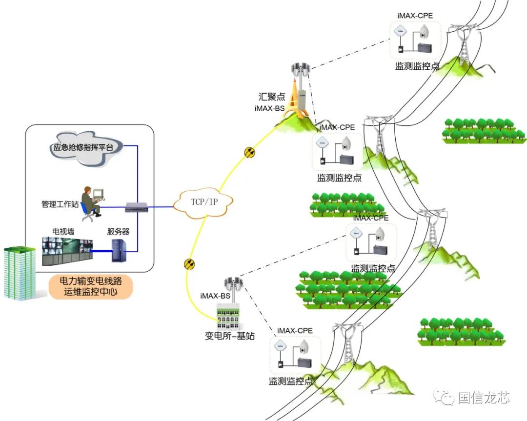 Based on the above analysis, networking relying on telecom operators’ 4G/5G technologies has issues in terms of availability, reliability, economy, and security. Guoxin Longxin’s iMAX Wireless Metropolitan Area Network system and iPower2000 new energy power supply system form a “golden combination” to solve the dual challenges of power supply and networking in the construction of power transmission and transformation line information systems.