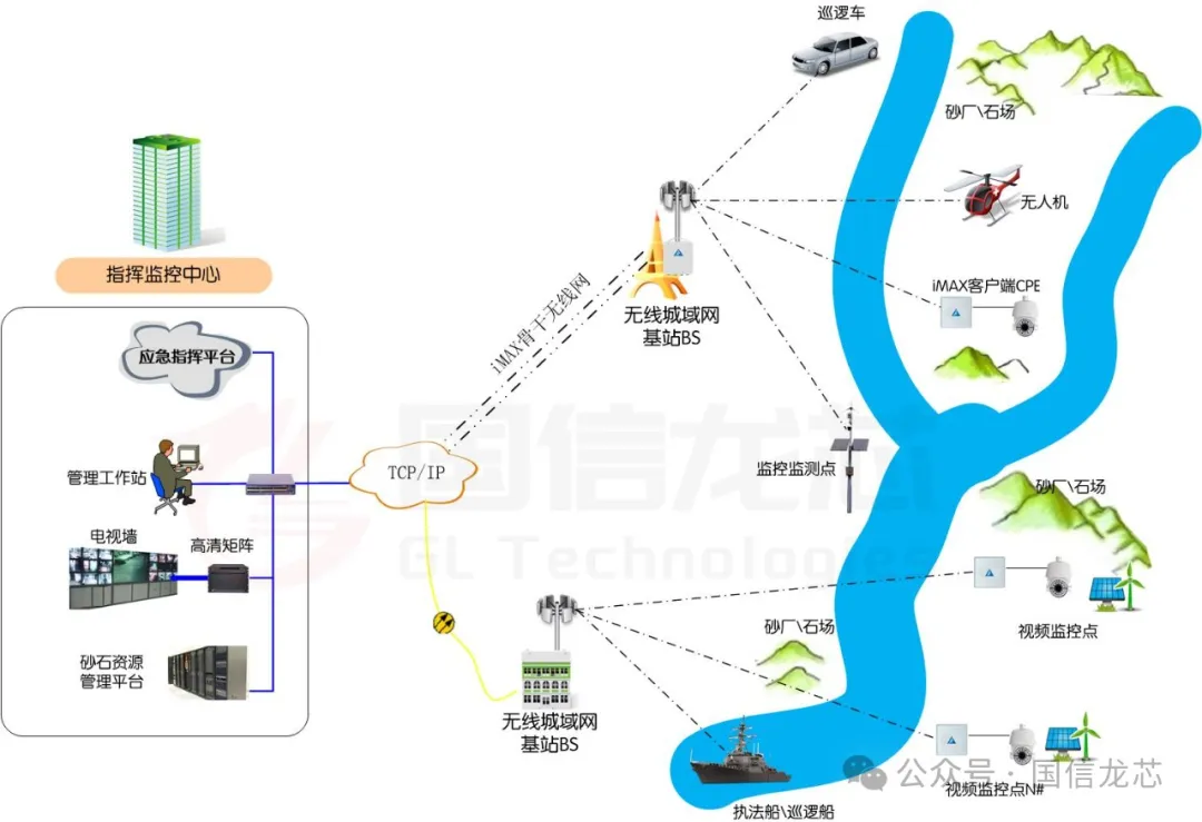To address these practical issues, Guoxin Longxin’s Networked Solution for Preventing Illegal Quarrying and Sand Mining, based on multi-mode wireless metropolitan area network (WMAN) technologies, stands out as the optimal choice.