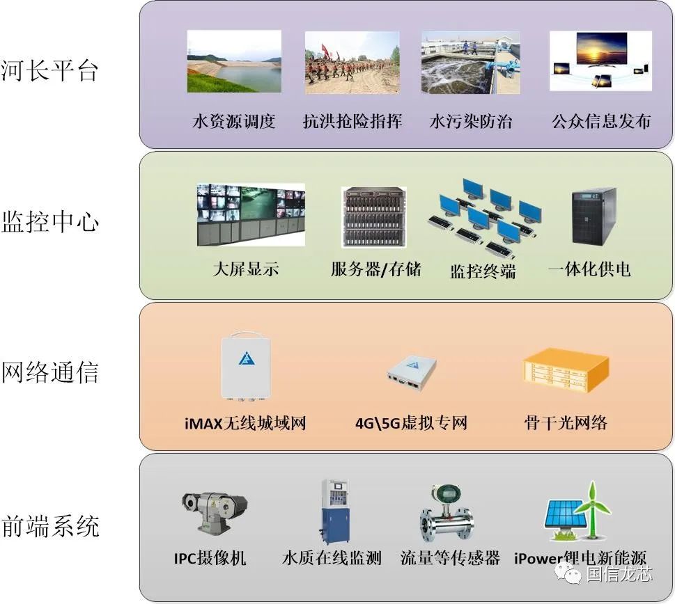 Guoxin Longxin’s iMAX 5G Wireless Metropolitan Area Network system or the SD-CX cloud exchange solution based on 5G/4G LTE, as the most important network communication method here, also plays a pivotal role. Due to varying basic conditions across regions and vastly different scales and requirements for the River and Lake Chief management, the network design for this scenario is more complex and requires targeted customization based on specific networking needs, which will not be elaborated further here.